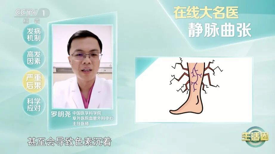 如果未及时治疗,任由下肢静脉曲张进一步发展,可能会出现色素沉着、皮肤溃烂,或者形成血栓,堵塞血管,导致静脉炎,甚至可能会导致肺栓塞。