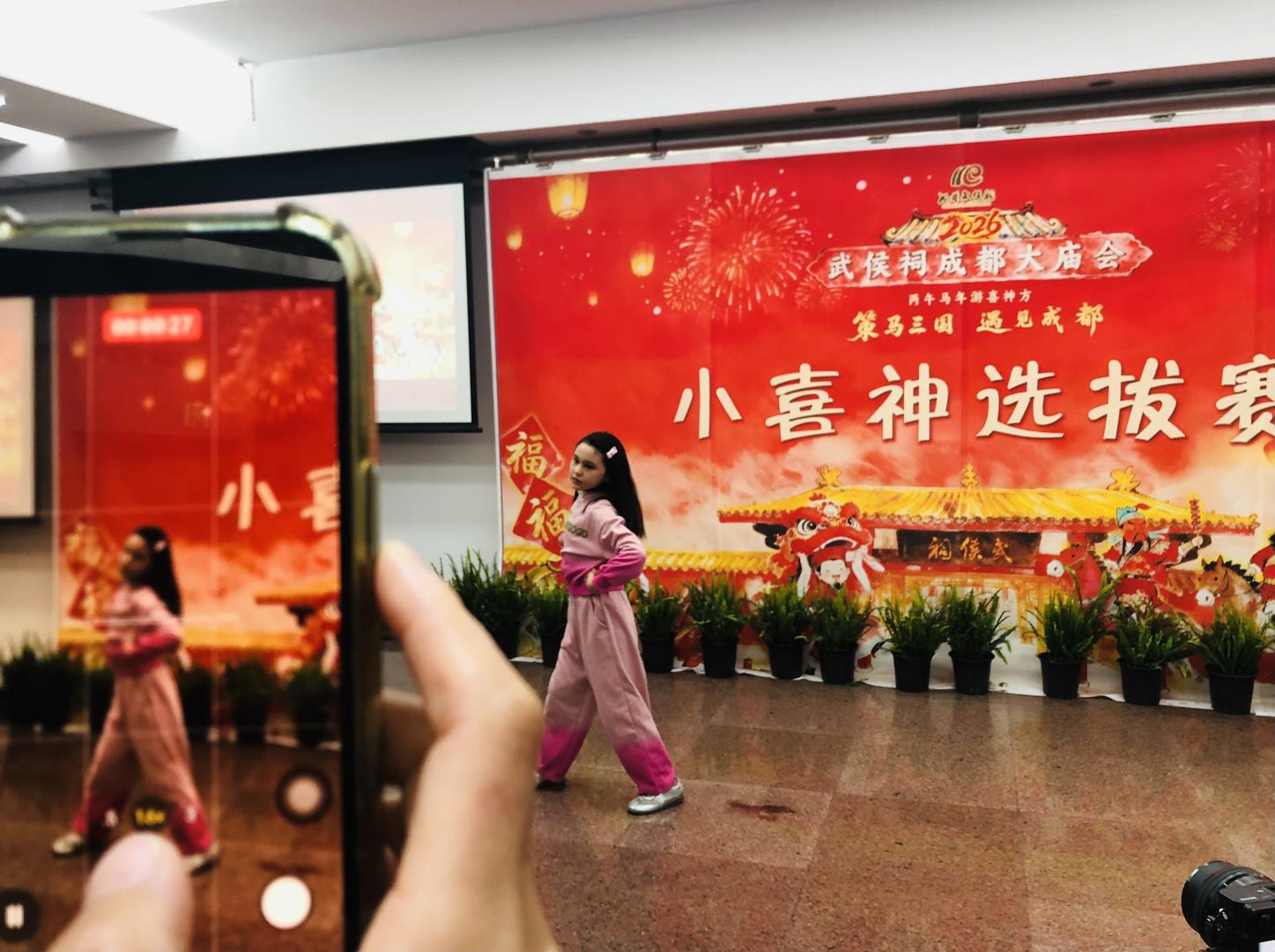 2月3日下午,在成都武侯祠博物馆的“小喜神”选拔现场,暖洋洋的室内温度,红彤彤的背景板,加上孩子们的欢声笑语,一股比“解冻刘德华”更浓郁的过年氛围笼罩全场,提醒着大家:马年春节已近在眼前。